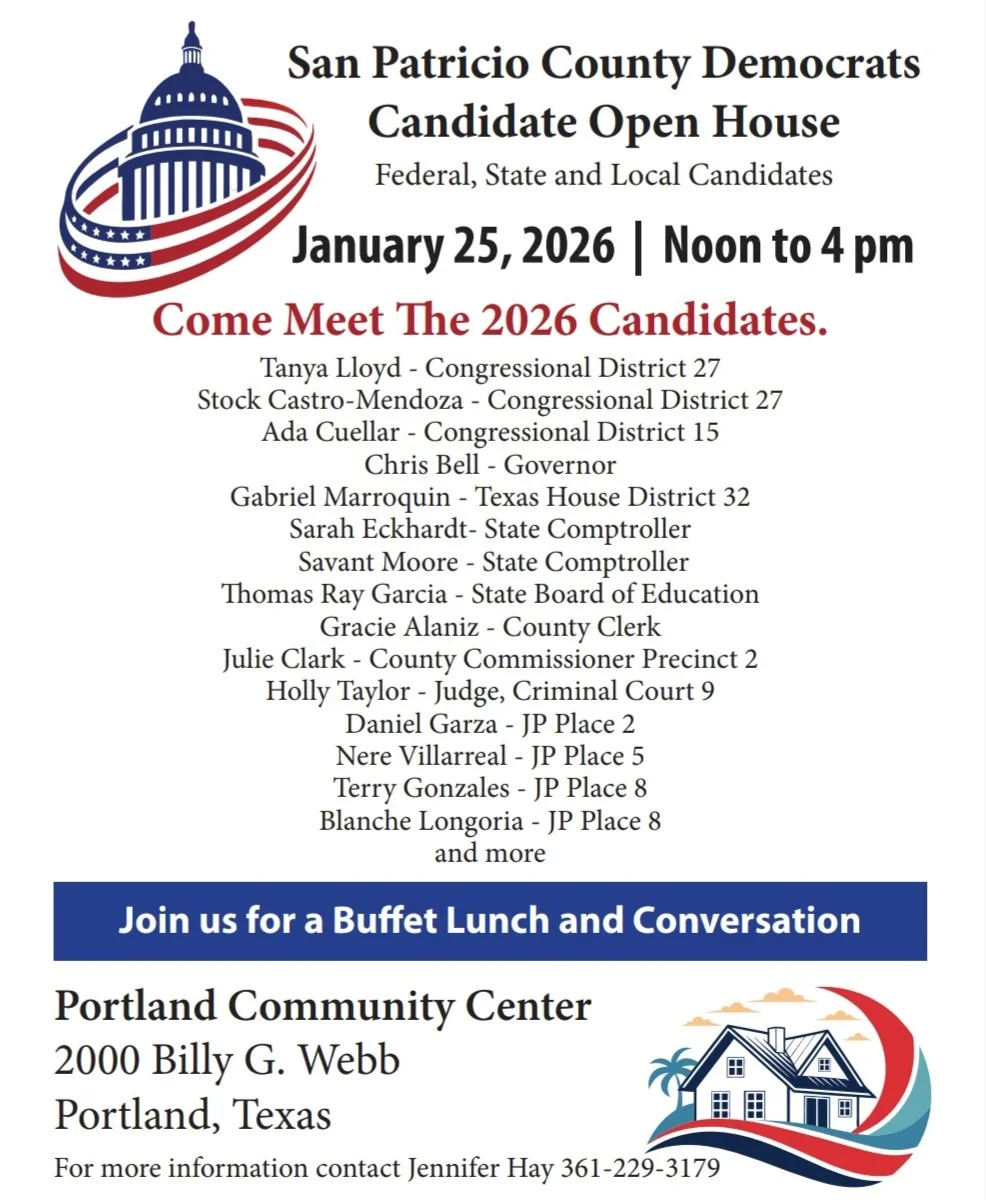 The San Patricio Democratic Meet and Greet has been rescheduled to Sunday, February 15th.